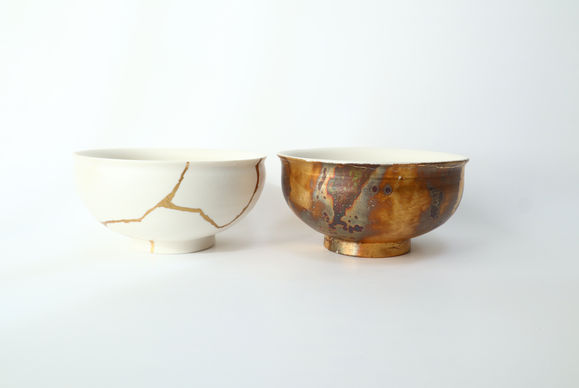 Each bowl is wheel-thrown, hand-lacquered, adorned with gold, silver, or copper foil, and finished with a protective coating that makes it dishwasher-safe and stain-resistant.